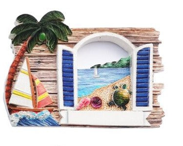 "An der Küste" 3D-Souvenir-Magnet – Fensterläden-Panorama