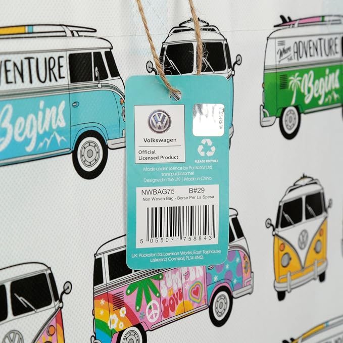 Der stylische Shopper mit kultigem VW T1 Bus-Motiv ist der ideale Begleiter für Einkäufe und den Alltag. Mit seiner handlichen Größe von ca. 33 × 39 cm verbindet er praktischen Nutzen mit zeitlosem Retro-Charme.