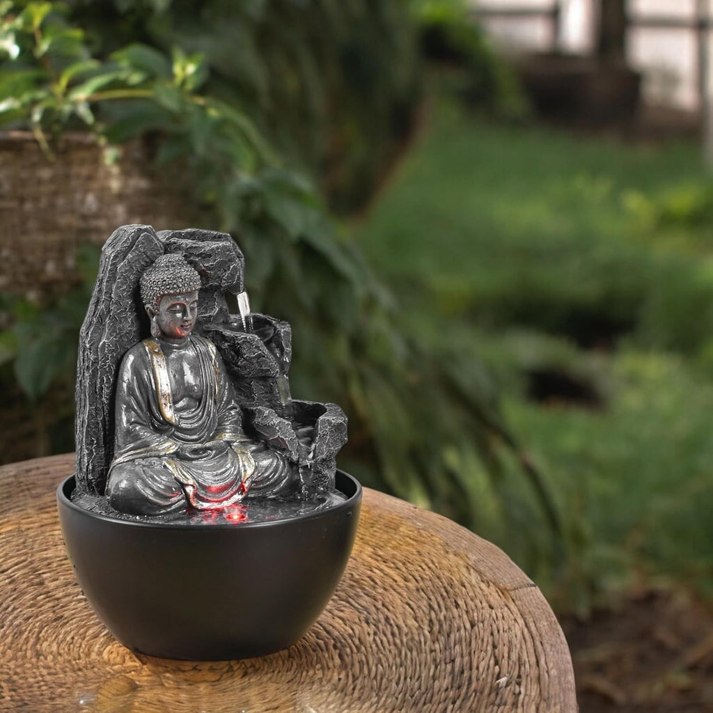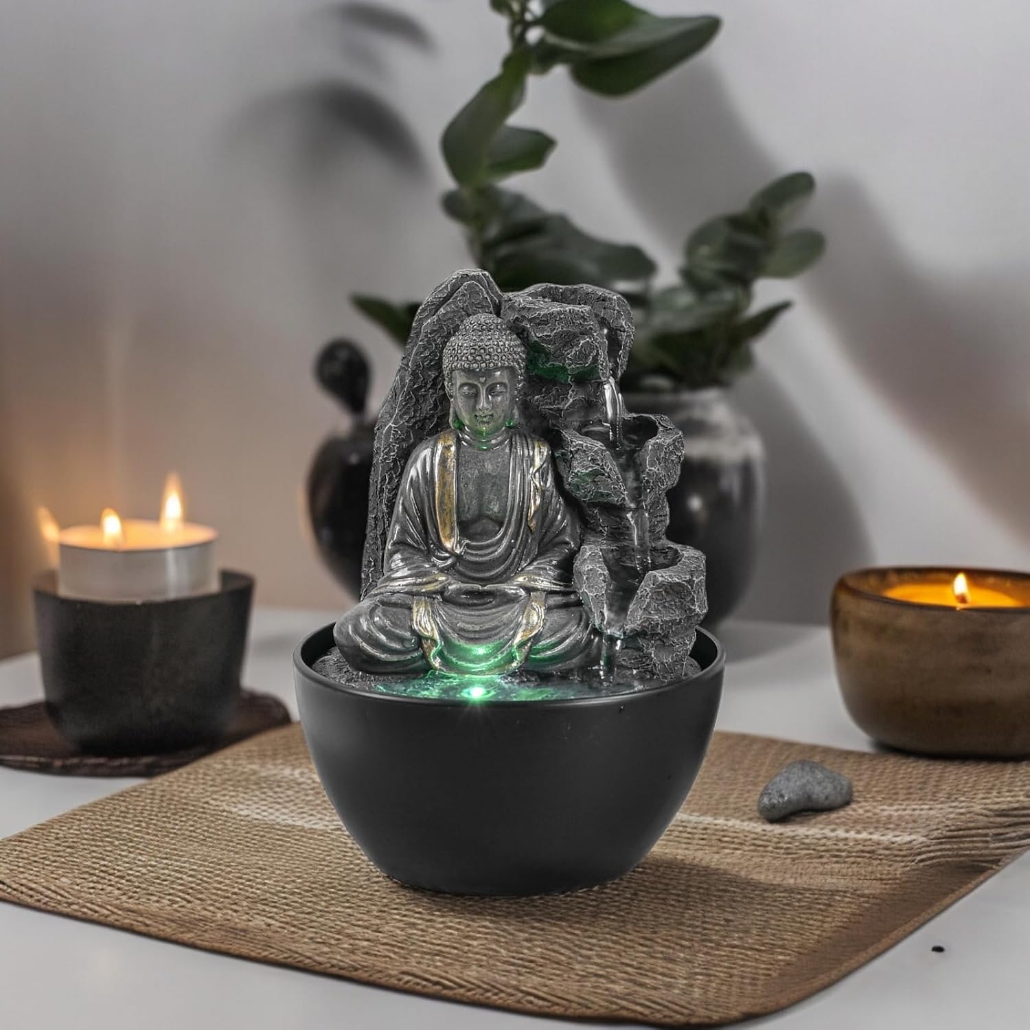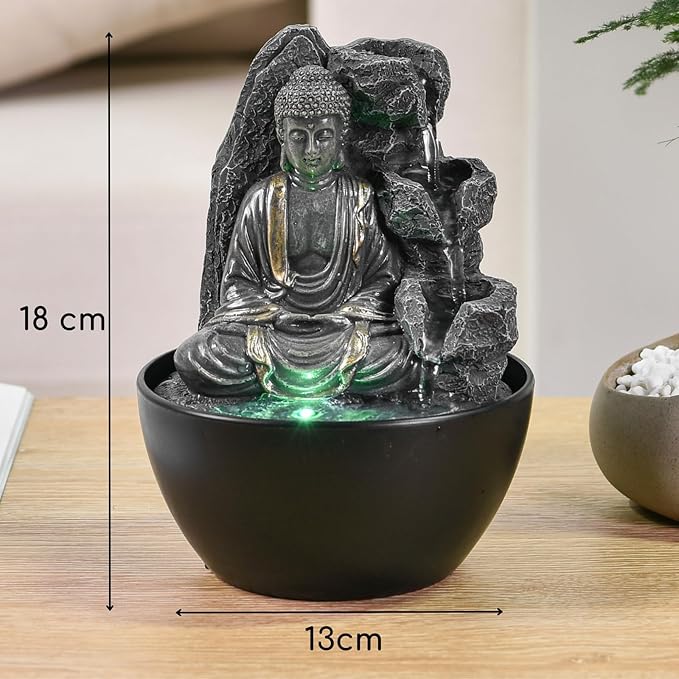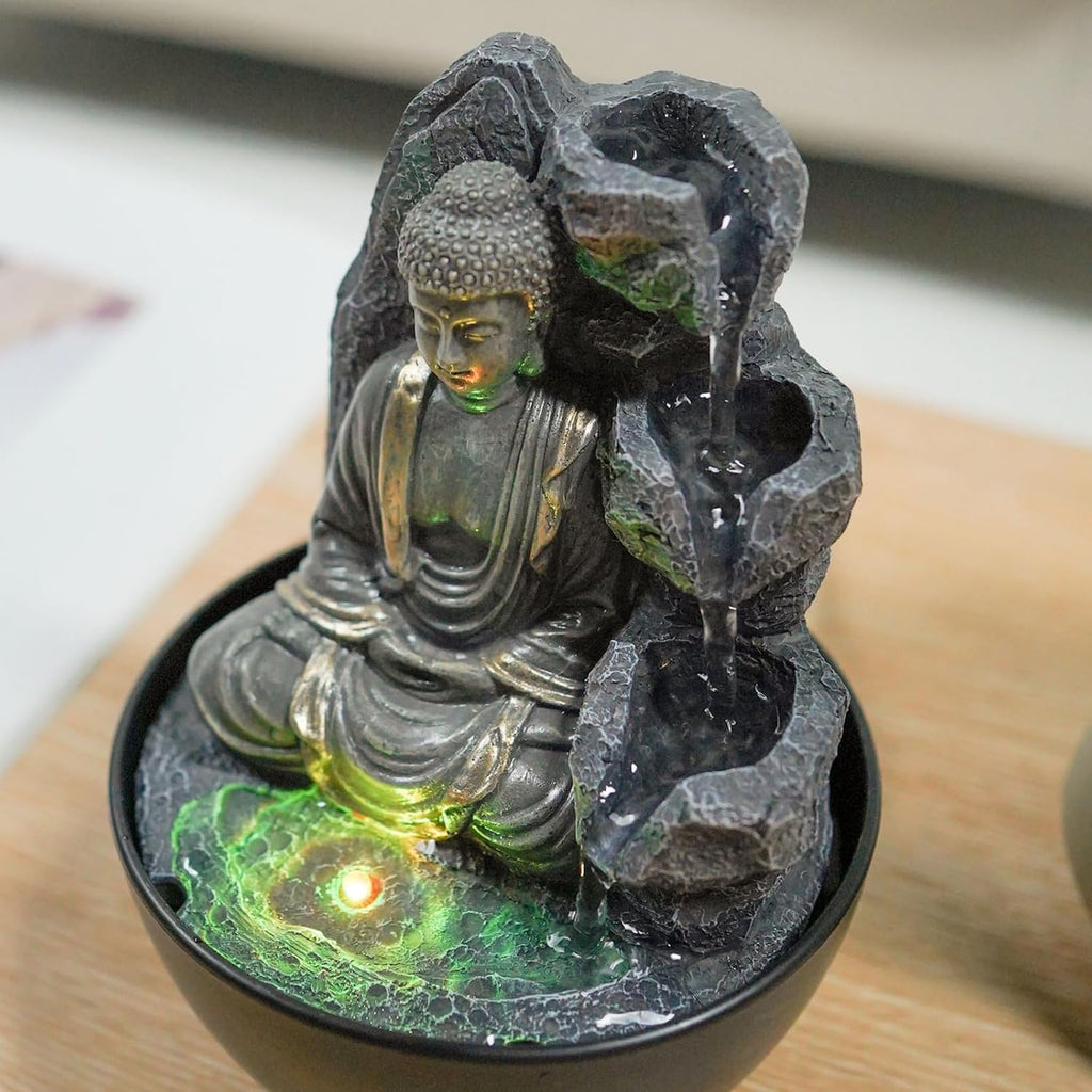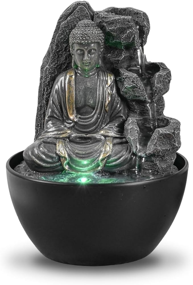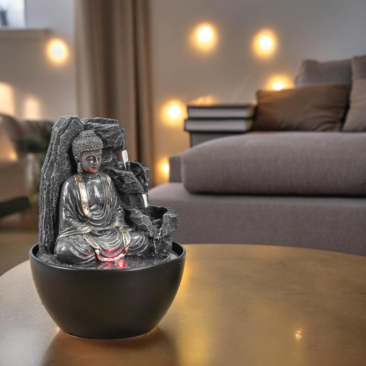 Zen Arôme Buddha Zimmerbrunnen Tischbrunnen Meditationsbrunnen mit farbiger LED-Beleuchtung - Revata