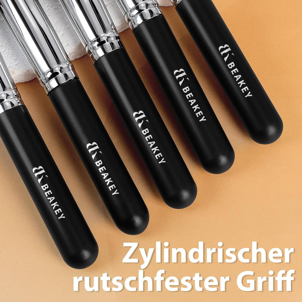 Erleben Sie professionelle Ergebnisse mit dem vielseitigen BEAKEY Make-up Pinsel Set, das alles bietet, was Sie für ein makelloses Make-up benötigen – jetzt in der neuen Version mit elegantem schwarzen Etui!