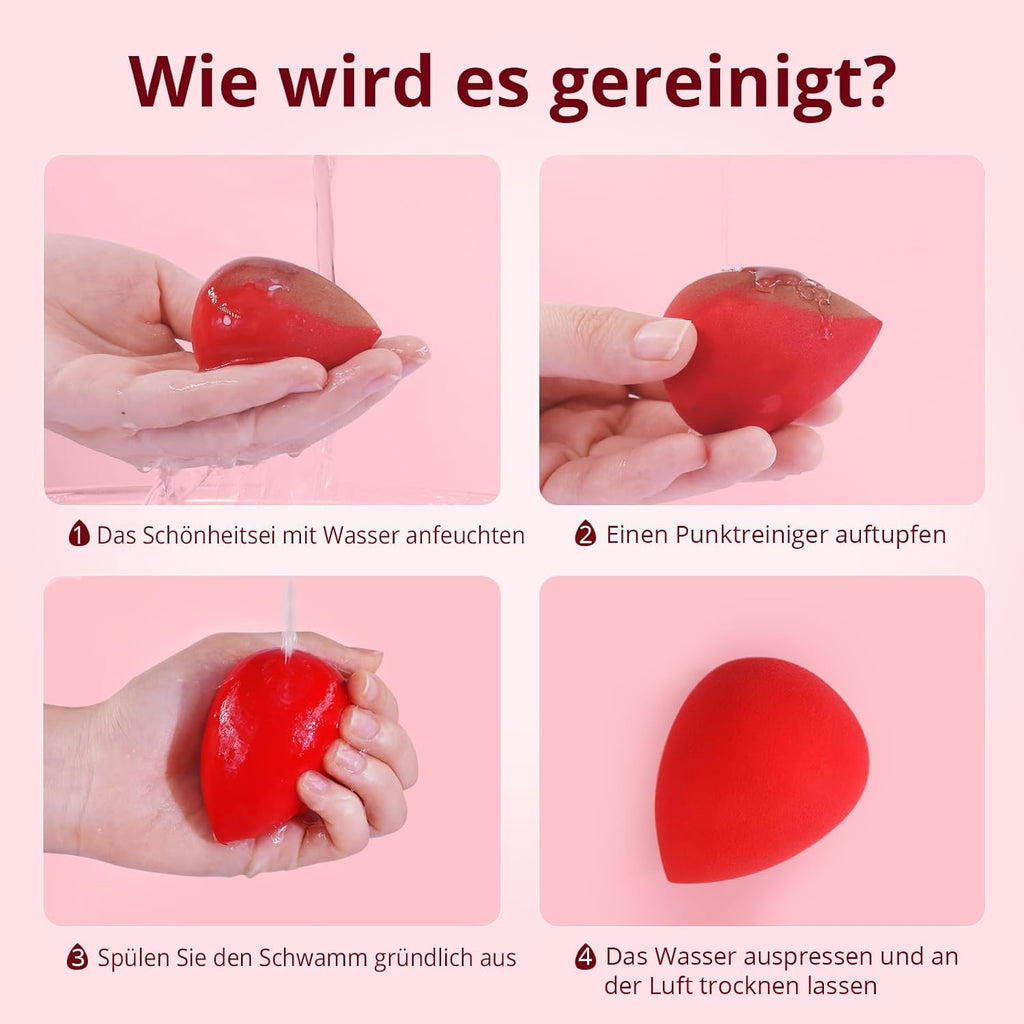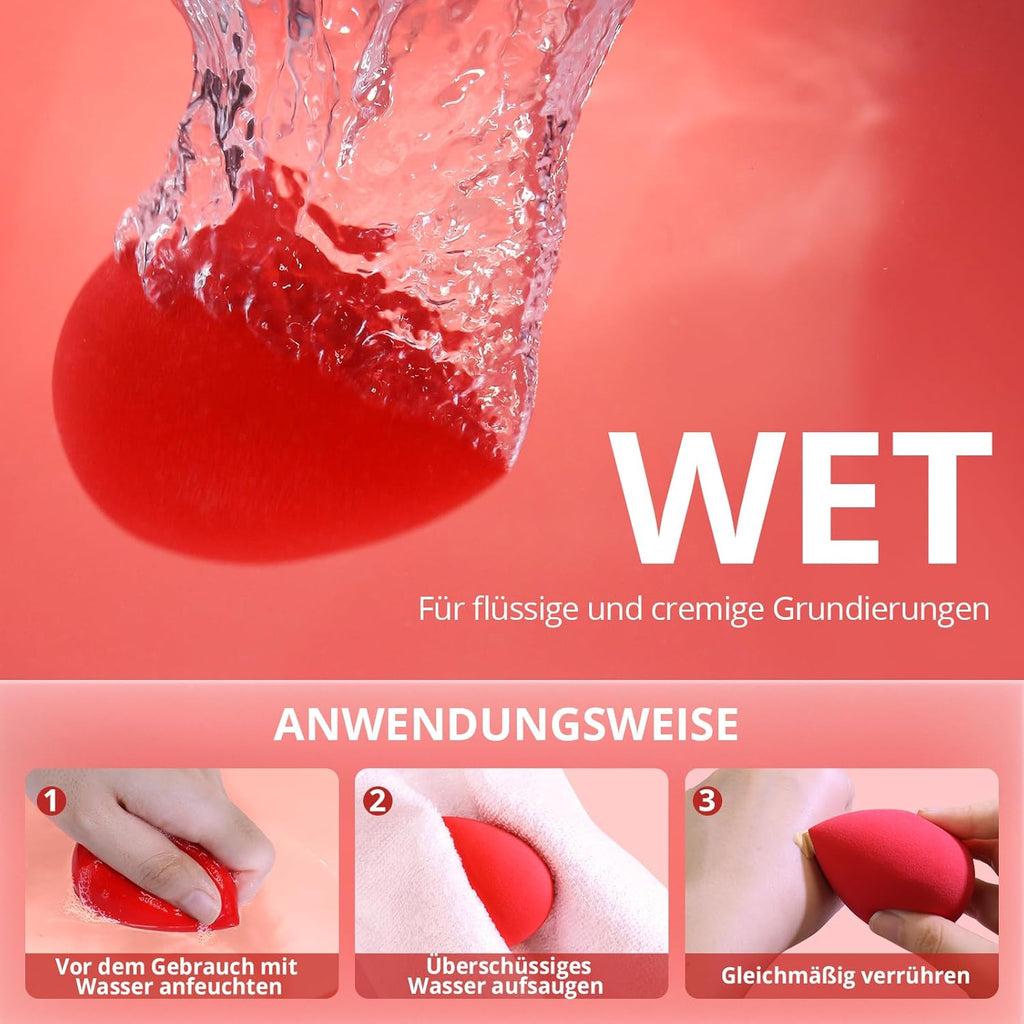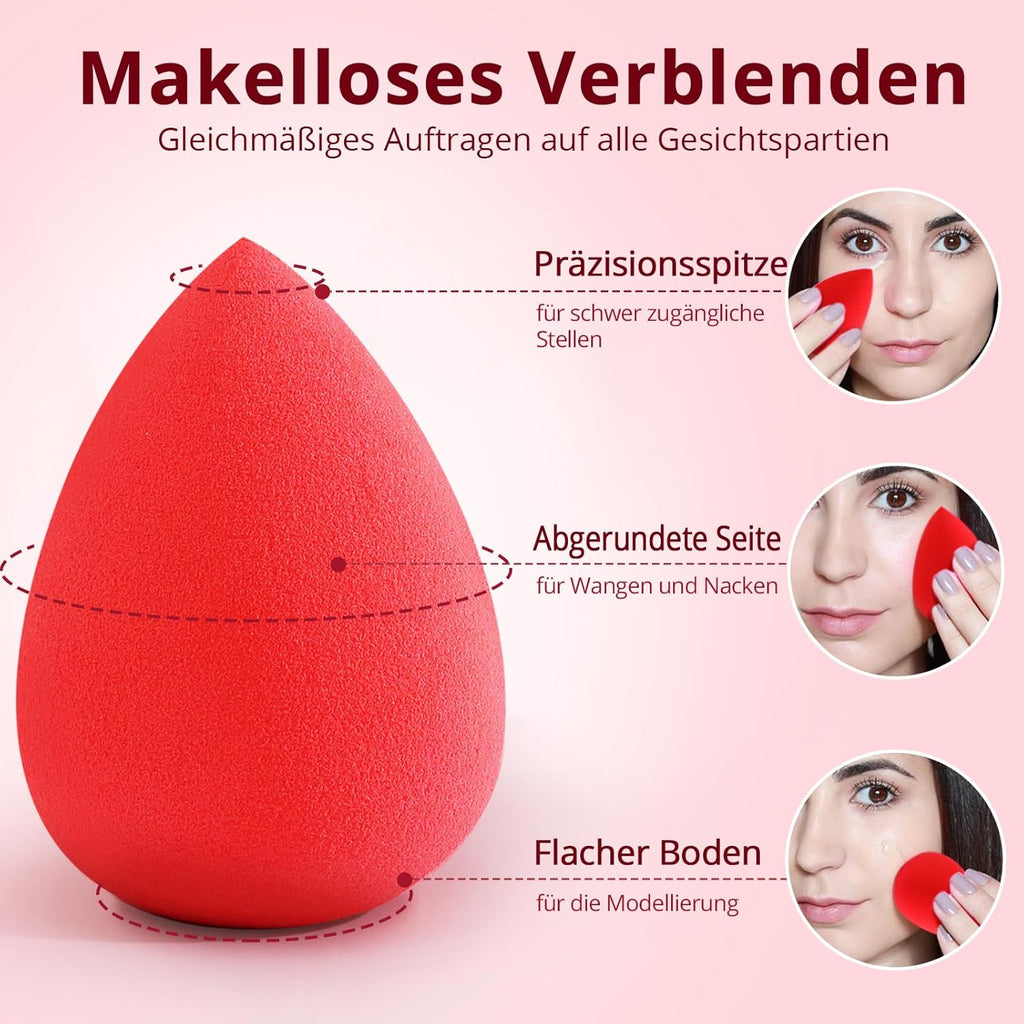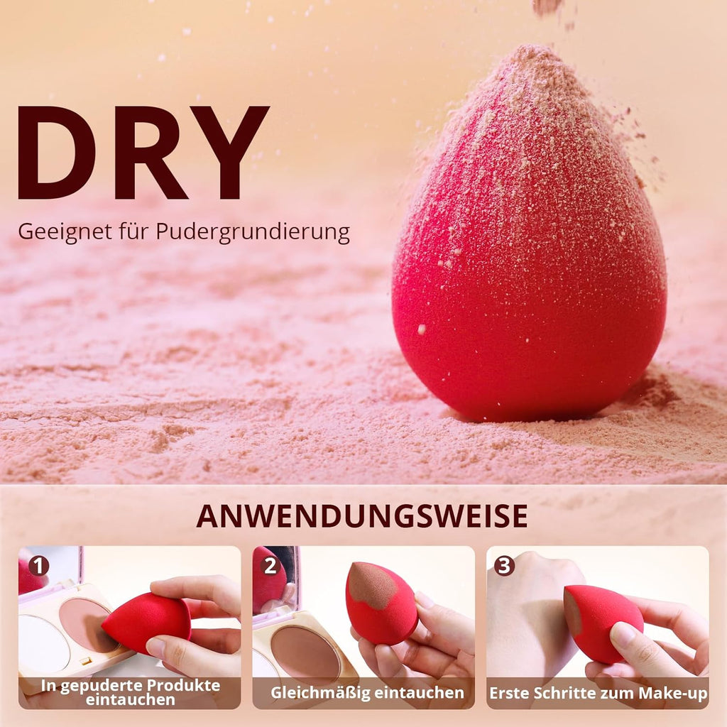 Perfekt für Foundation, BB-Creme, Puder & mehr: Die BEAKEY Beauty Blender eignen sich für trockene und flüssige Kosmetika.